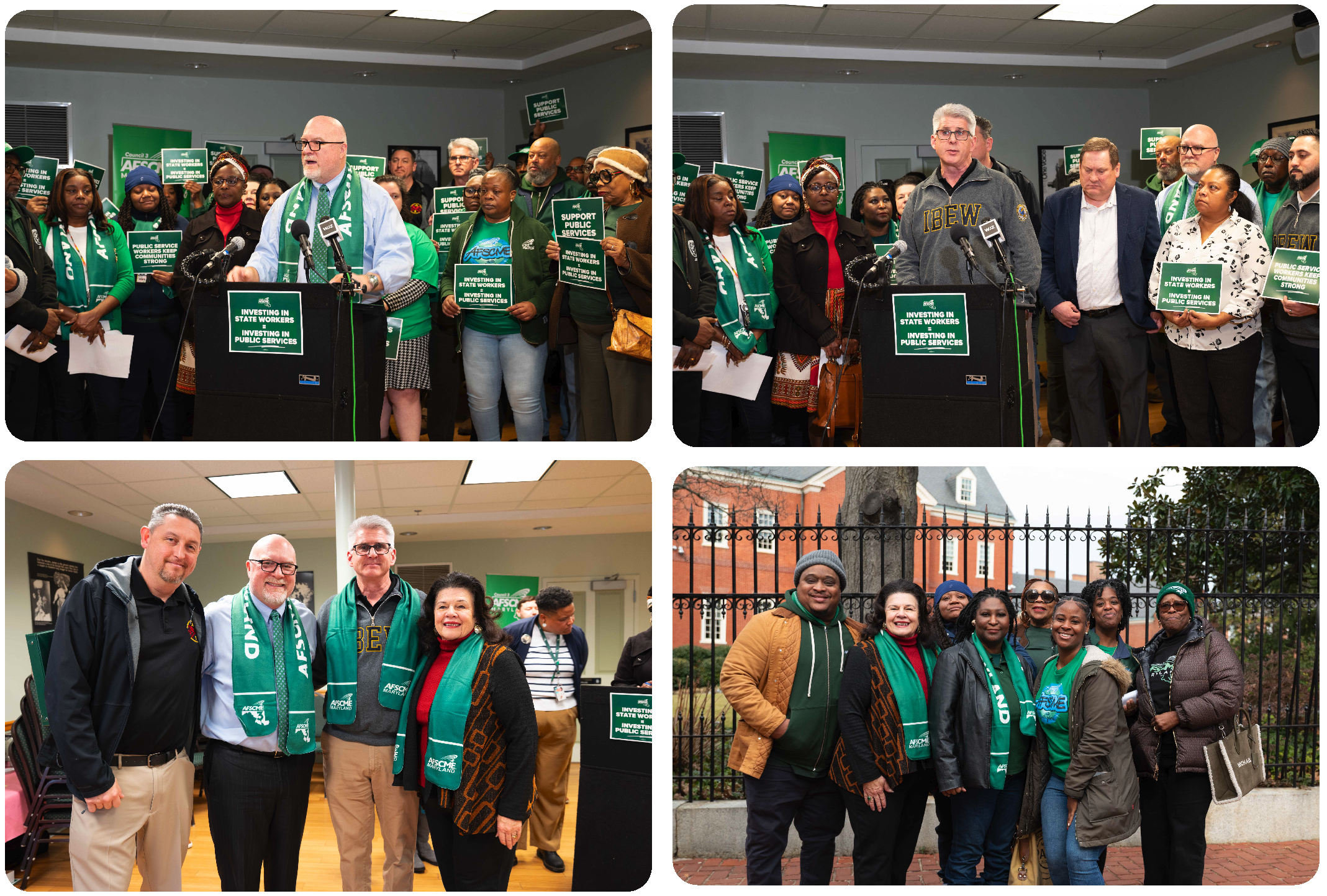 On the first day of the 2026 Legislative session, President Donna S. Edwards joined AFSCME Maryland President Patrick Moran, members from AFSCME, Mike McHale, IBEW Local 24 business manager, and other members of the Building Trades at a start-of-session press conference. Speaking about the real challenges workers face amid short-sighted funding and public service pressures, the coalition — joined by supportive legislators and concerned allies — stood united in one clear demand: fully fund and fully resource state employees and the public services Marylanders rely on.